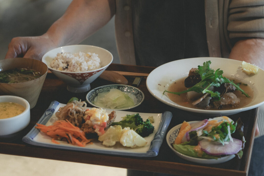 お馴染みのゴトウパンさんとまるまつ食堂のランチ、今回はおむすびころりんさんのおむすびも新たに加わりました。ご馳走様でございました。