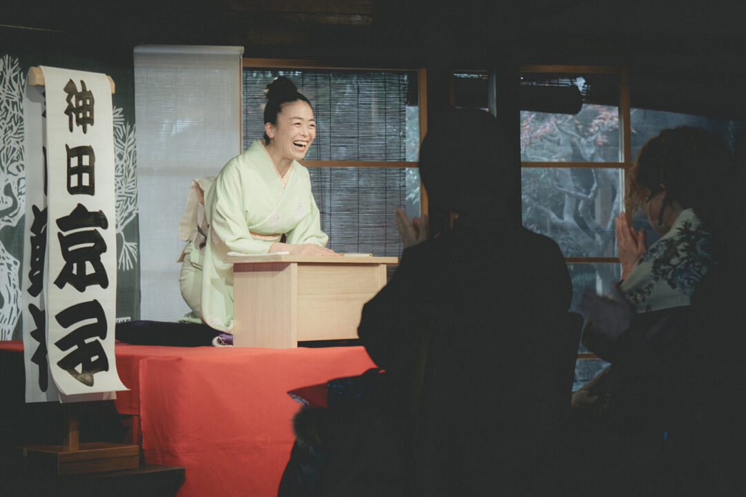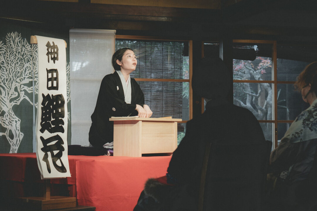 神田京子さんの初日は古典「青龍刀権次」。時代の光と影に翻弄される主人公の小悪党ぶりがユーモラスに語られ、その滑稽で悲哀な人生は今の時代に重なるところもあったのではないでしょうか。